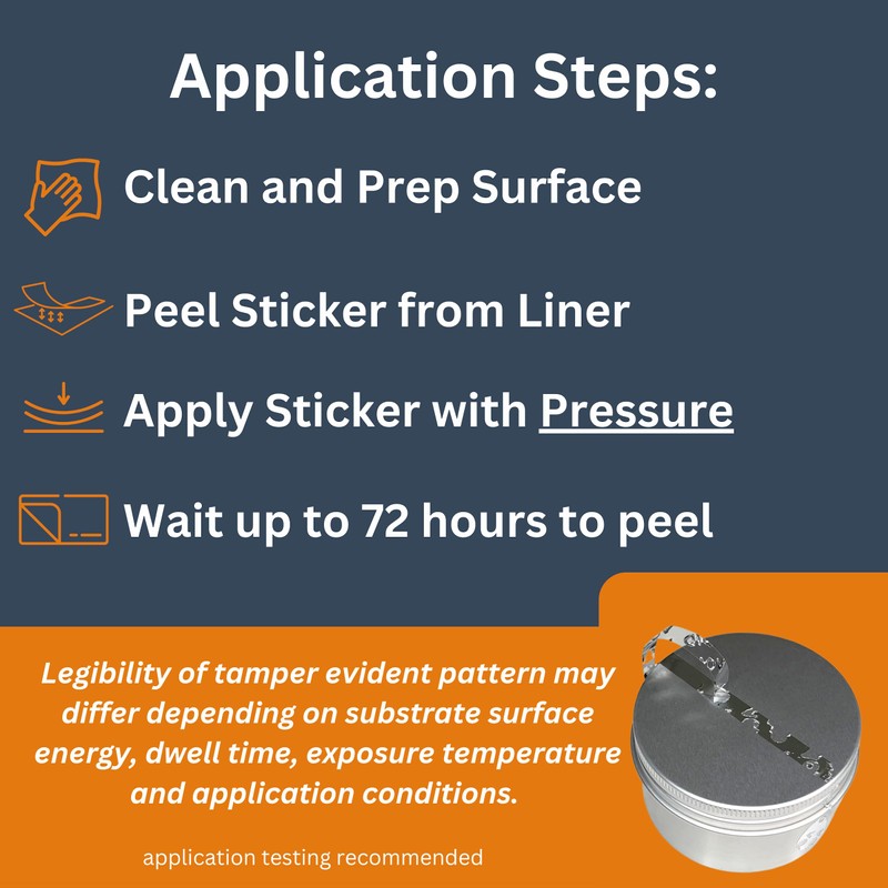 - These tamper labels achieve permanent stick to products within 72 hours at normal room temperatures