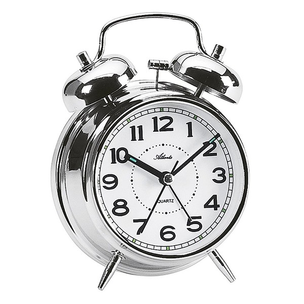 Atlanta 1646-19 Double Bell Alarm Clock Loud 14 cm Metal Silver Chrome