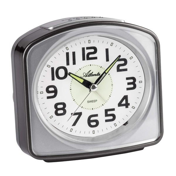 Atlanta 2150/4 Large Bell Alarm Clock without Ticking Loud Ringtone Light Snooze Analogue Silver Grey