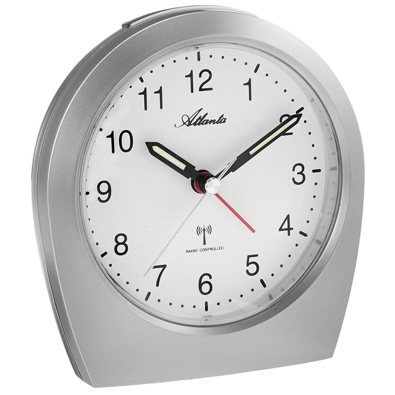 - Radio-Controlled Alarm Clock No Ticking in Silver
