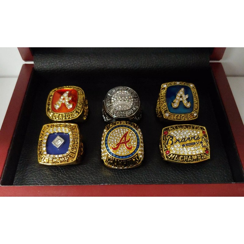 Atlanta Braves - World Series and NL Pennant 6 Ring Set With Wooden Display Box.