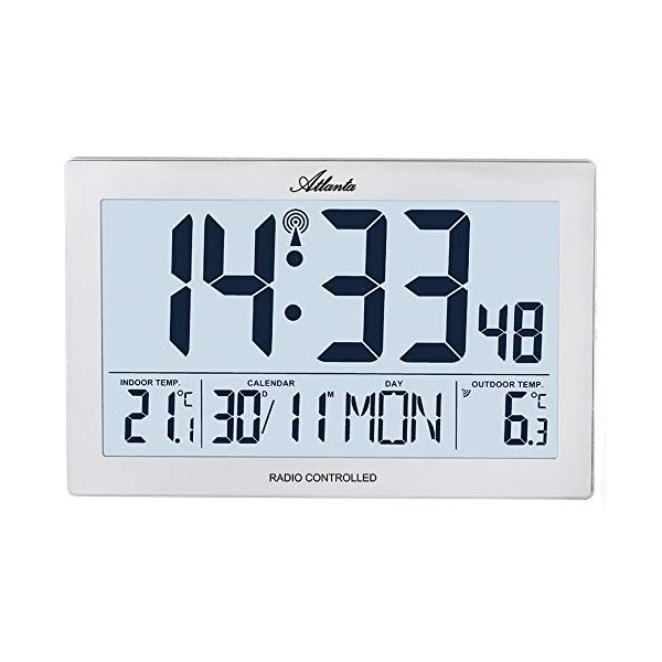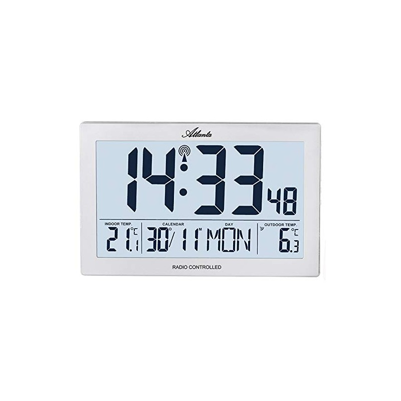 Atlanta Radio Wall Clock Digital with Temperature Display Indoor Outdoor Rectangular Silver - 4509