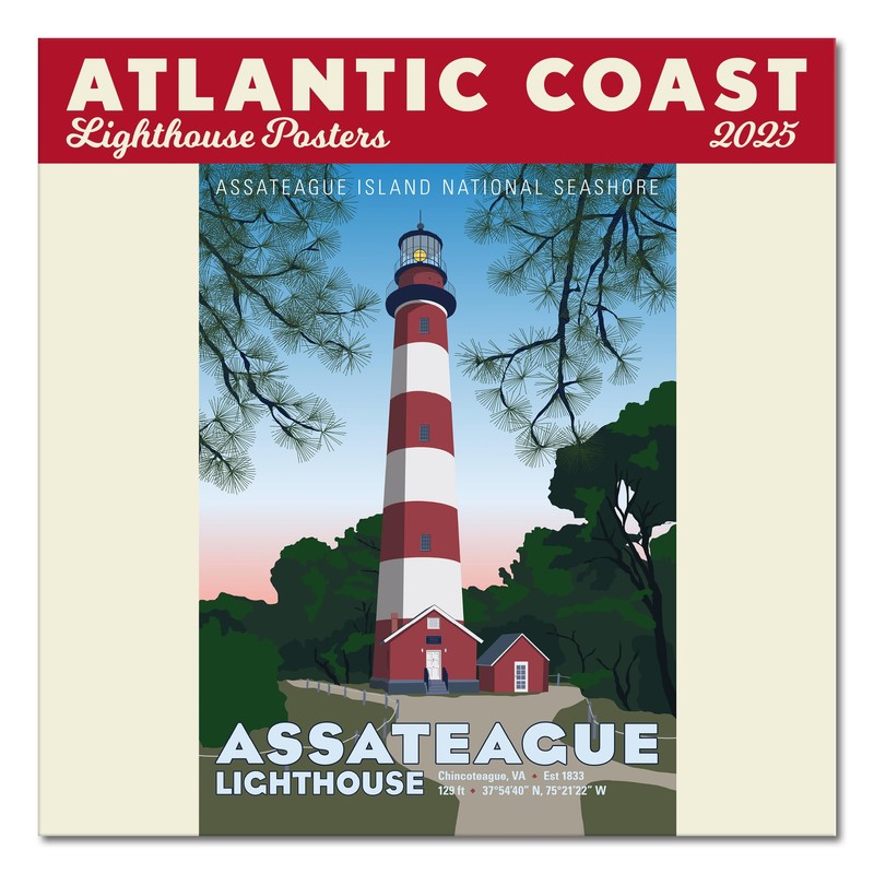 Atlantic Coast Lighthouse Posters Mini Wall Calendar 2025, 7" x 7"