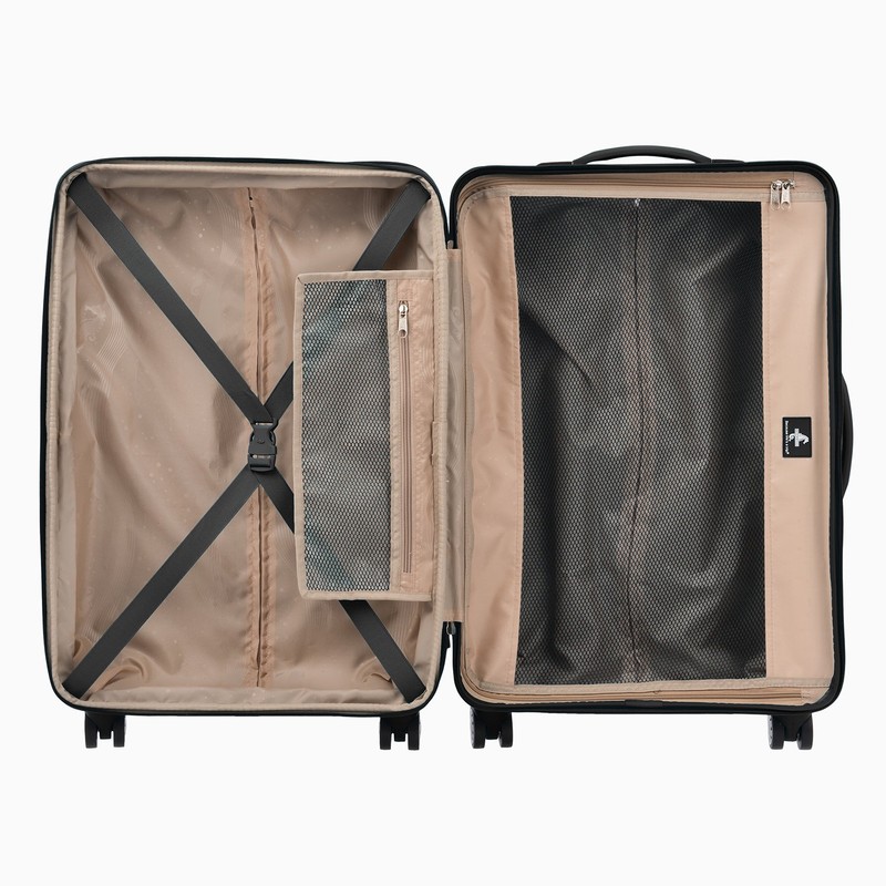 - Hard-shell ABS material with PC film ensures lightweight durability and protection of contents.