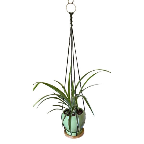 ATLanyards Army Green Hanging Plant Shelf | Green Plant Hanger | Floating Plant Shelf | Macrame Plant Holder | 367 (28" Long with Wood Ring)