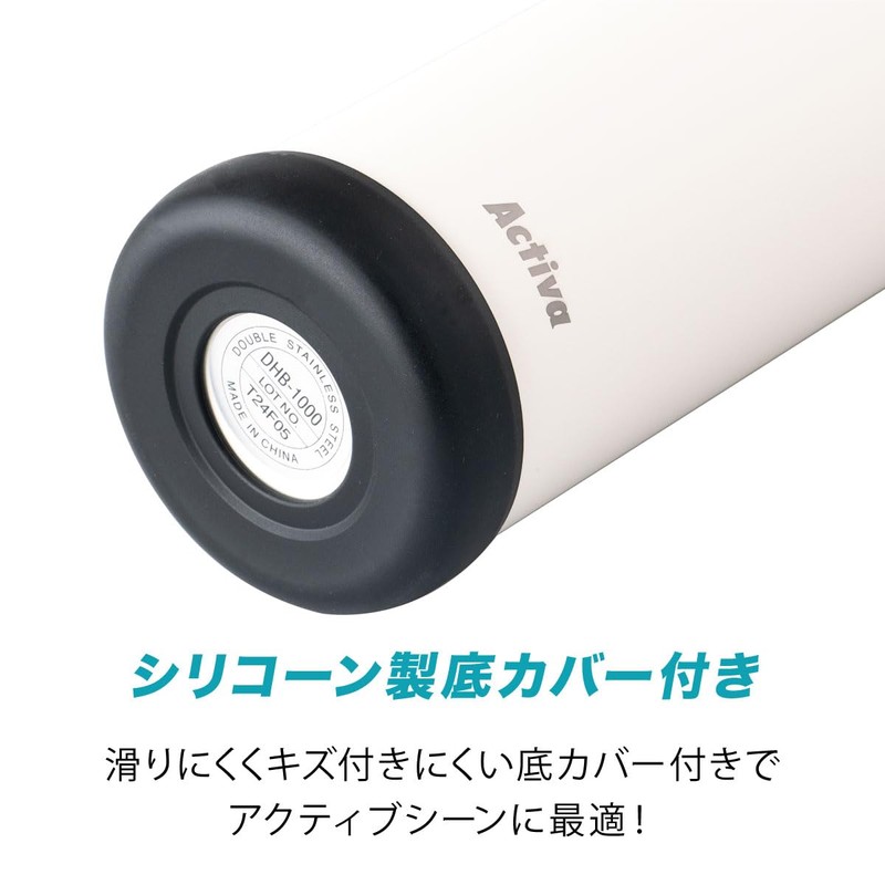 Atlas ADHB-1000WH Water Bottle, 33.8 fl oz (1,000 ml), 1.0 L; Cold Insulated, Lightweight, Direct Drinking Bottle with Handle, Outdoor Activa, White