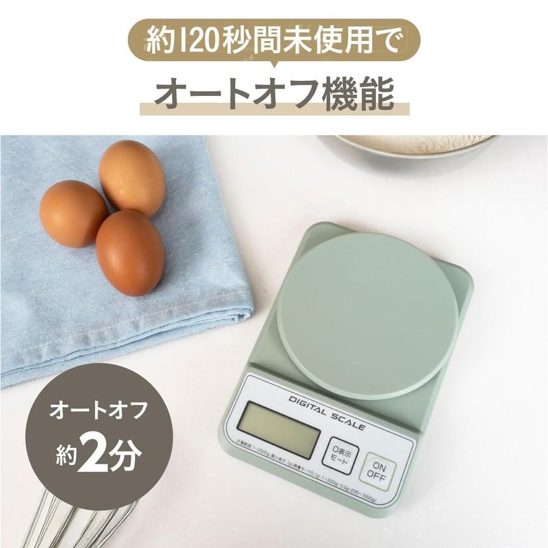 Atlas ADS-2400IG Digital Kitchen Scale, 4.4 lbs (2 kg), Scale, 0.004 oz (0.1 g) Units, Trace Mode, Tare Tare, 0 Display, Compact, Thin, Kitchen, Cooking, Candy Making, Ice Green