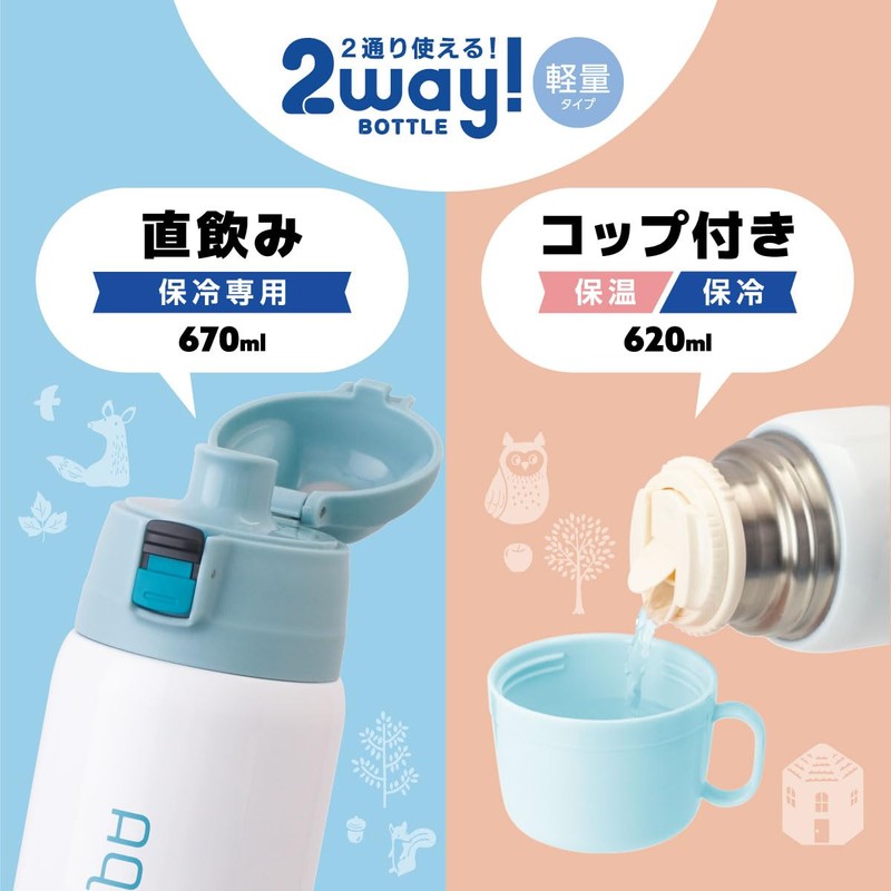 - [Capacity (approximate] Direct Bottle: 24.2 fl oz (670 ml), Bottle with Cup: 22.0 fl oz (620 ml)