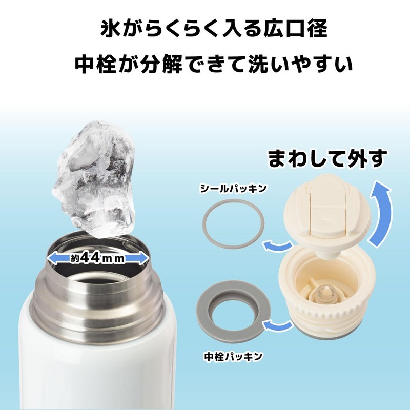 | Material Type: | Inner bottle/Base: Stainless steel Body: Stainless steel (acrylic resin coating) Cap unit, cup, inner plug: Polypropylene Washer: Silicone rubber Handy pouch: Polyester Cushion: EPE Shoulder strap: Polypropylene |