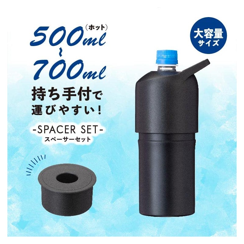 Atlas Bottle-In Bottle L Type with Spacer, Black, Large Capacity, 23.6 fl oz (600 - 700 ml) (Compatible with 16.9 fl oz (500 ml) Vacuum Insulated, Plastic Bottle Holder, ABIB-LBKSP