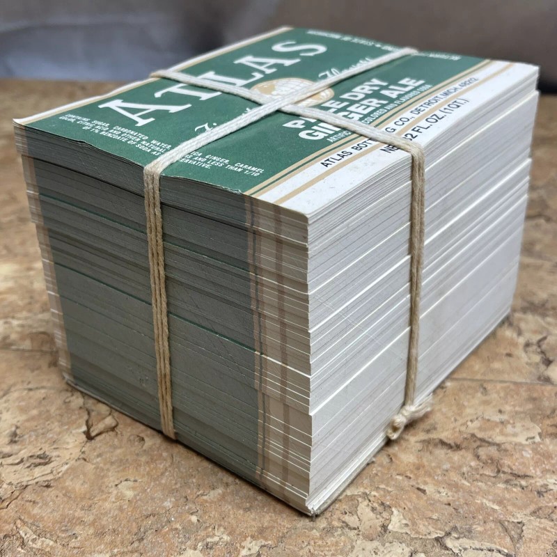 Atlas Wholesale Lot 1000 Vintage 1QT Ginger Ale Labels Atlas Bottling Co Detroit MI JD