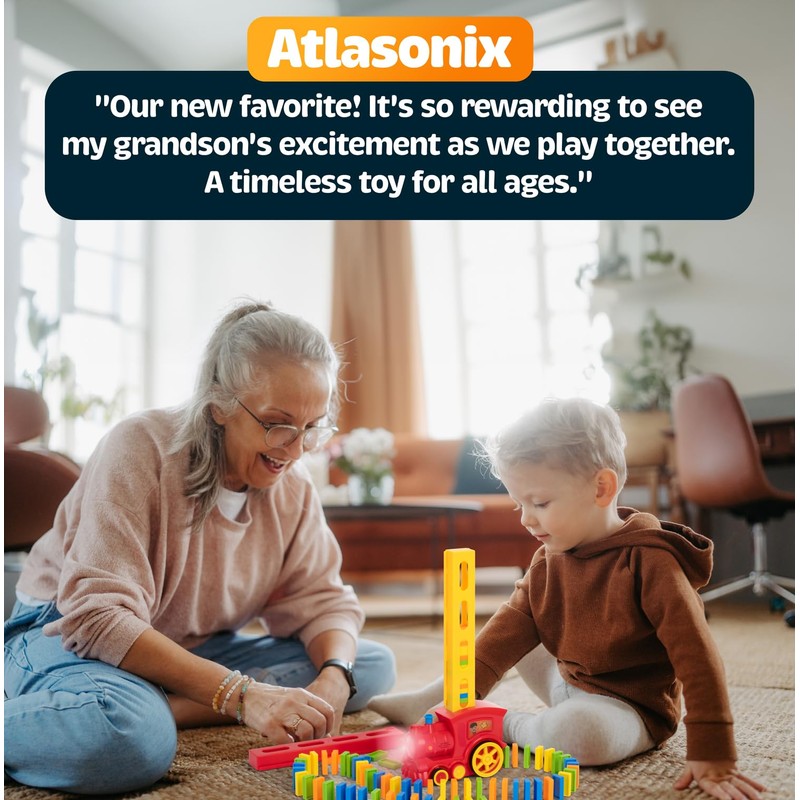 - 🚂Another Great Product From Atlasonix - This Automatic Domino Placing Train Never Sticks. Plus Customer Service You Just Can’t Beat. Buy Now, And Enjoy The Excitement That Only Pushing Down Perfectly Aligned Dominoes Can Give.