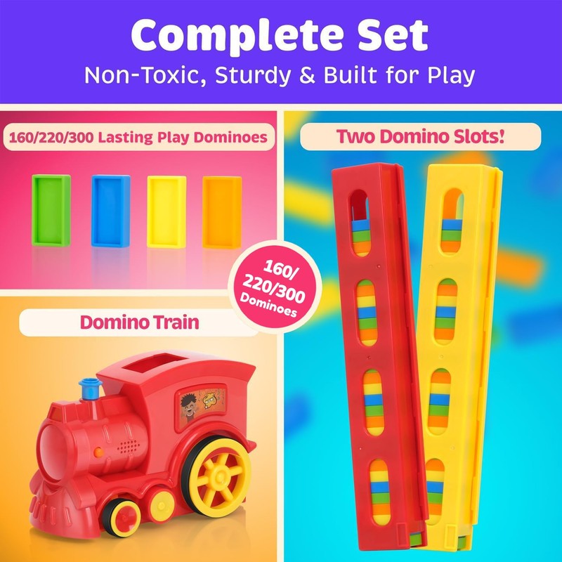 Domino Train, Domino Train for Kids, Automatic Set for Kids, 3 Year Old Boy Gift, Montessori Toys, Fun, Educational Toys, Birthday Present for 3-5 Year, 300 Blocks
