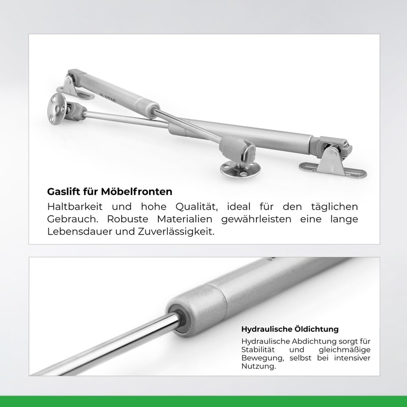 The product range offers gas lifts with different forces – from 50N to 180N – which allows a perfect adaptation to various applications, from light furniture fronts to heavy flaps.