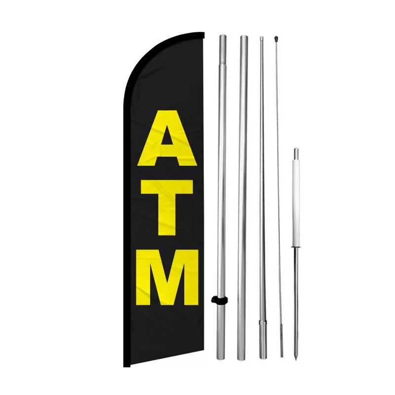 ATM - Windless Swooper Feather Flag 15' Tall Pole Kit Banner Sign kf-h