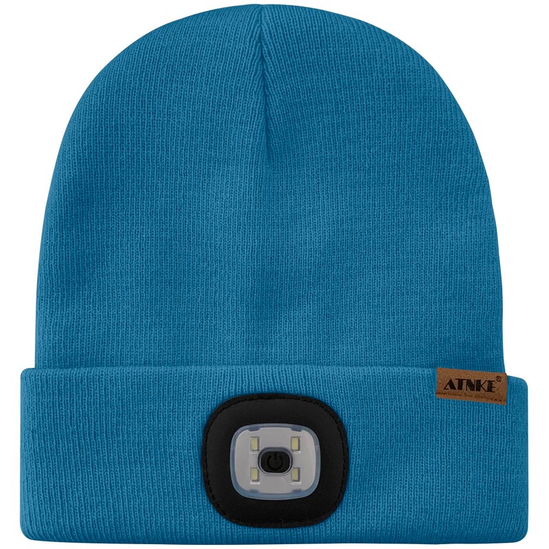 ATNKE LED Lighted Beanie Hat,USB Rechargeable 4 LED Running Headlamp Ultra Bright Cap with Light Hands Free Head Torch Winter Warm Knit Beany Tech Gifts for Men Women and Dad/Peacock Blue