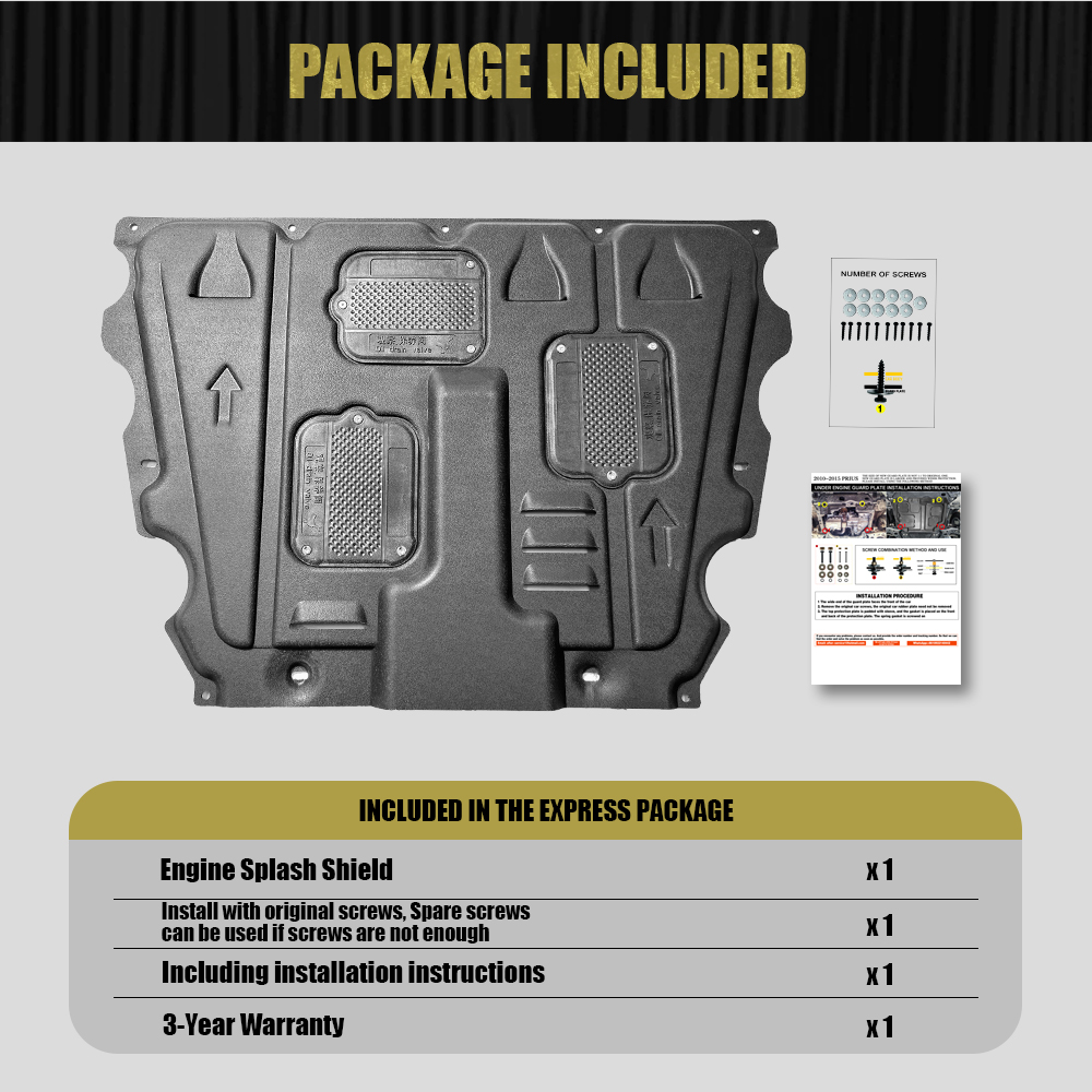 - Package includes: 1 Splash Guards+Screws+Instruction Manual