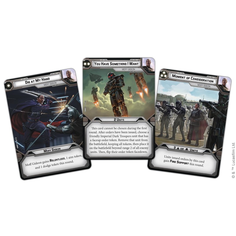 - SIGNATURE COMMAND CARDS: Harness Moff Gideon's strategic prowess with his three signature command cards, allowing you to shape your battle strategies around his cunning tactics.