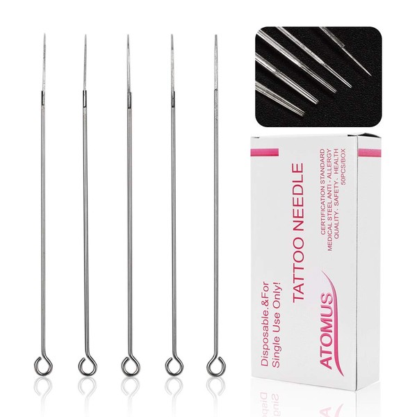 ATOMUS 50pcs Mixed Tattoo Needles 1RL 3RL 5RL 7RL 9RL Disposable Assorted Sterilized Professional Round Liner Tattoo Needles (Mixed)