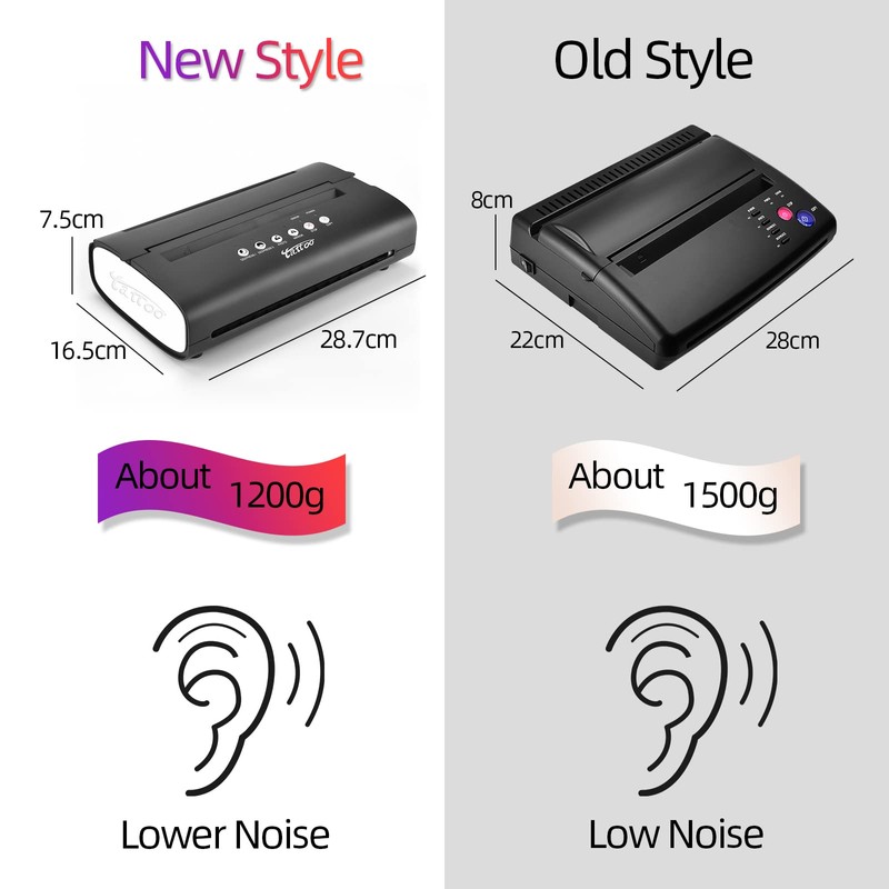 - ★ The Latest Version: Compared with the old version, this updated tattoo transfer machine comes with smaller size, faster transfer printing speed, lower noise and more stable performance. Net weight 1.2KG.