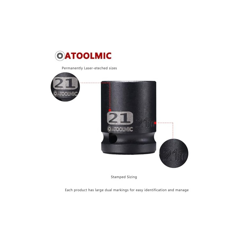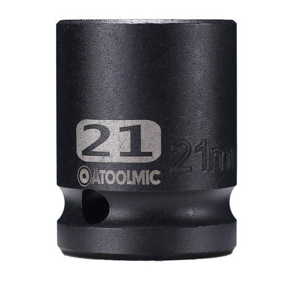 ATOOLMIC Shallow Impact Socket, Metric, 1/2-Inch Drive, 21mm,6 points(Shallow AT1221S)