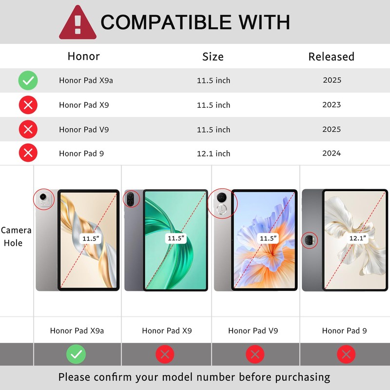 • Compatibility: Only Compatible with 11.5" Honor Pad X9a 2025 Tablet PC. Not fit any other 11.5-inch tablet PC.