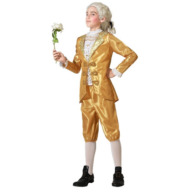 - Dieses goldene Höflingskostüm für Jungen ist ein elegantes und glitzerndes Kostüm, das an das Bild des Königs und der Aristokratie der Barockzeit erinnert. Mit diesem Kostüm hat Ihr Kind eine auffällige, luxuriöse und elegante Wahl für seine Party.