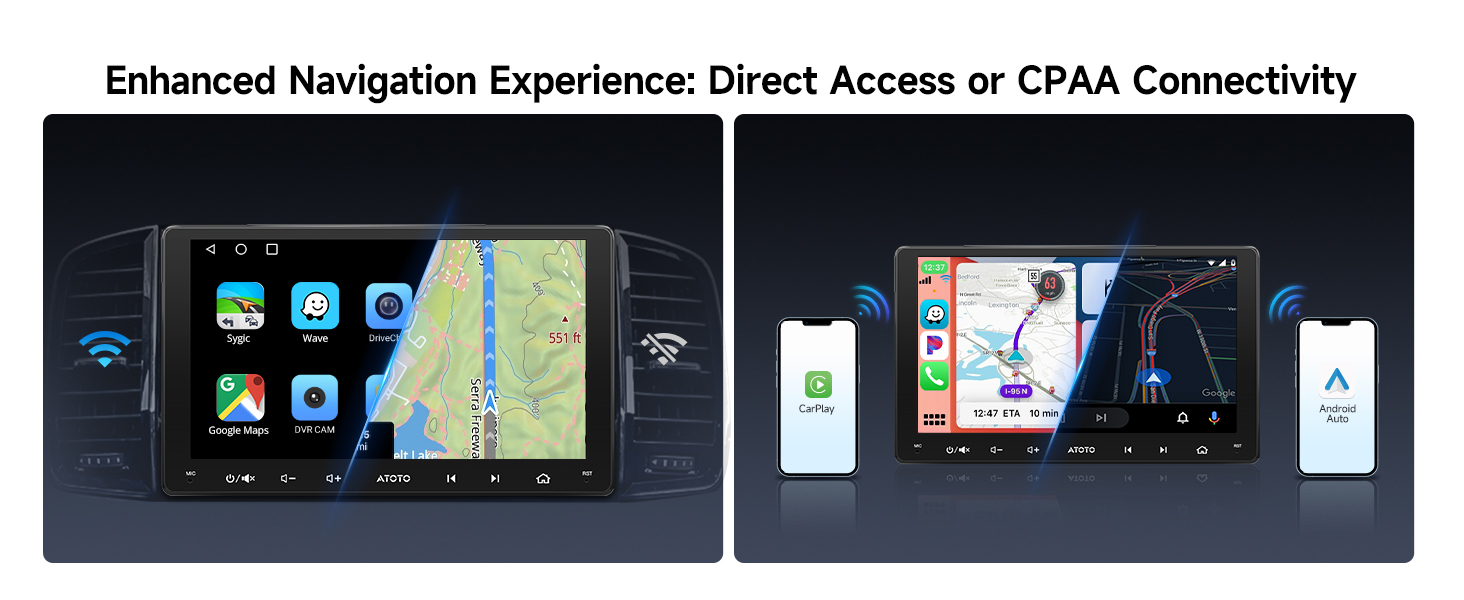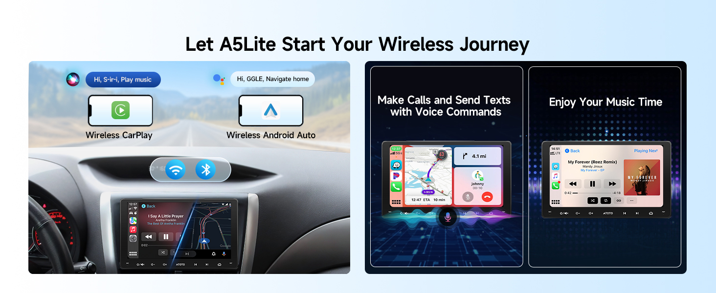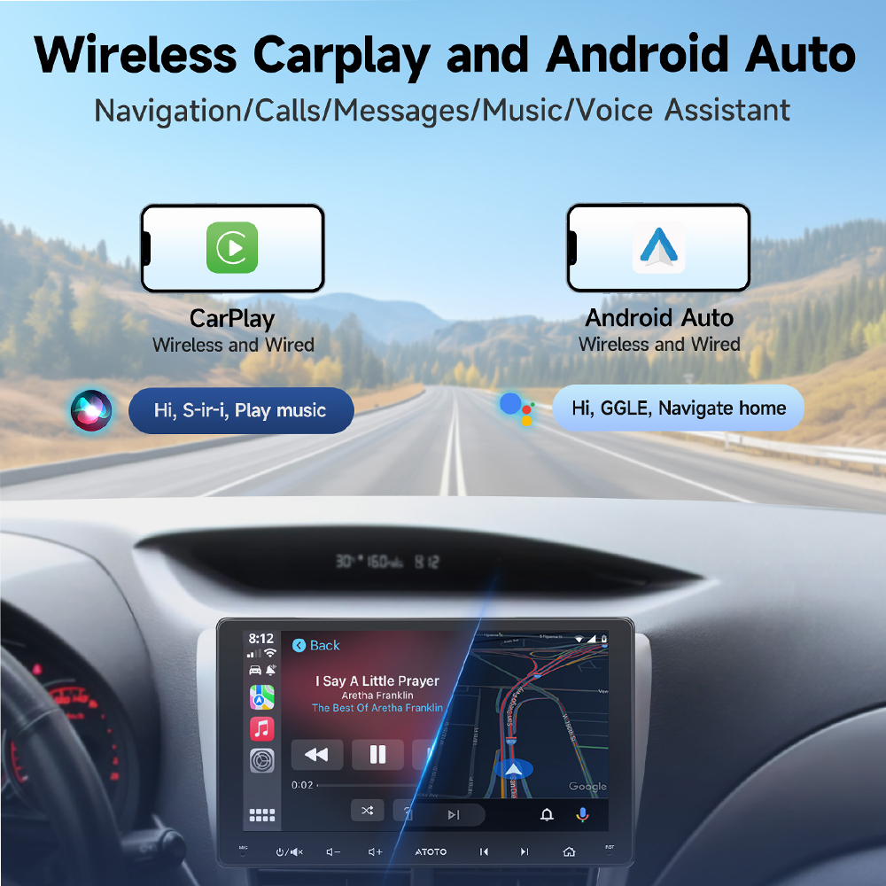 - Wireless CarPlay Android Auto: A5L double din radio supports both wired/ wireless CarPlay and wired/ wireless Android Auto. Enjoy the convenience of using S-ir-i or GGLE Assistant for navigation, music streaming, messaging, and making calls directly from your dashboard