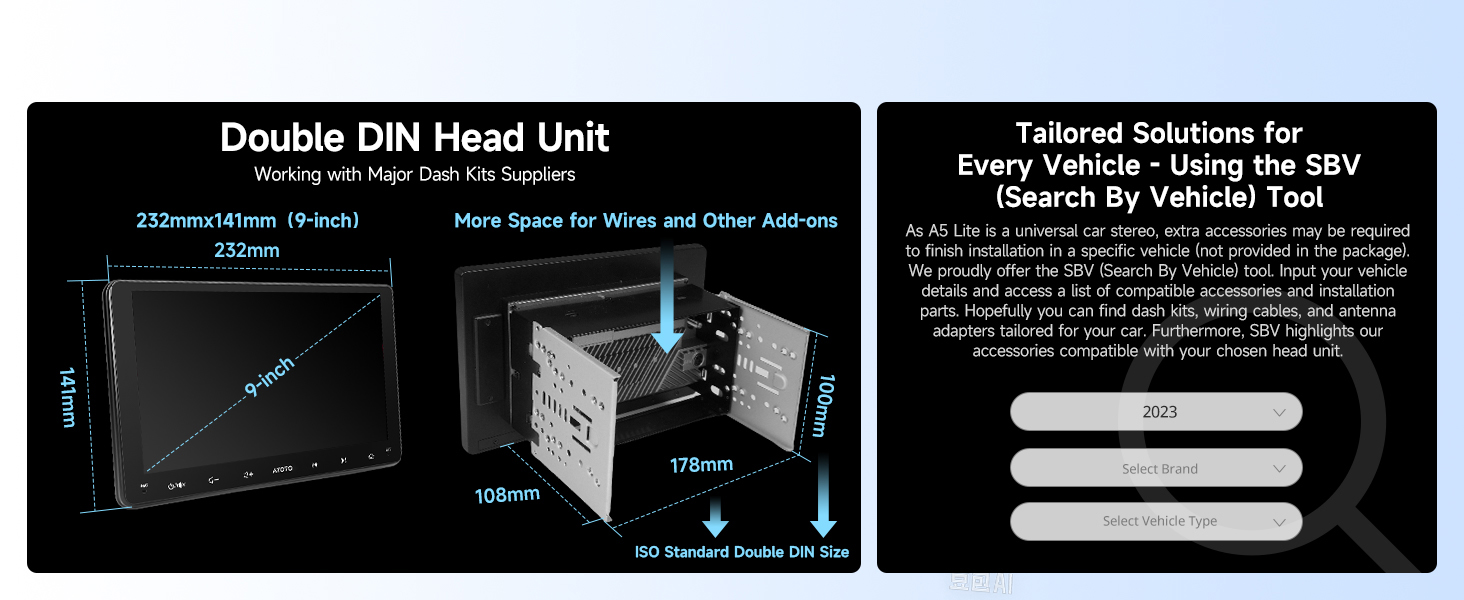 - Versatile Android System: A5Lite car stereo boasts an Android OS, a Cortex-A53 4-core 1.3GHz processor, and 2GB of RAM, 32GB of storage. A5L Android car stereo supports thousands of app downloads from sources like G PlayStore, including Hu-lu, Sp0tify, and so on