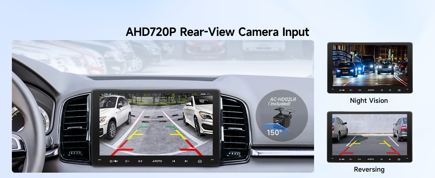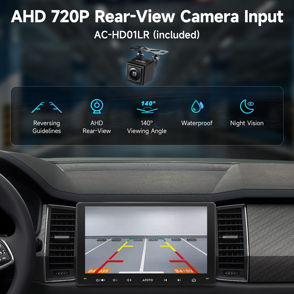 - A5Lite Car Radio with Backup Camera: When connected to the AC-HD01LR(included) rear-view camera, this car audio receivers system offers 720P AHD rear-view capabilities, including a display with parking guidelines and 140°wide view angle design for parking