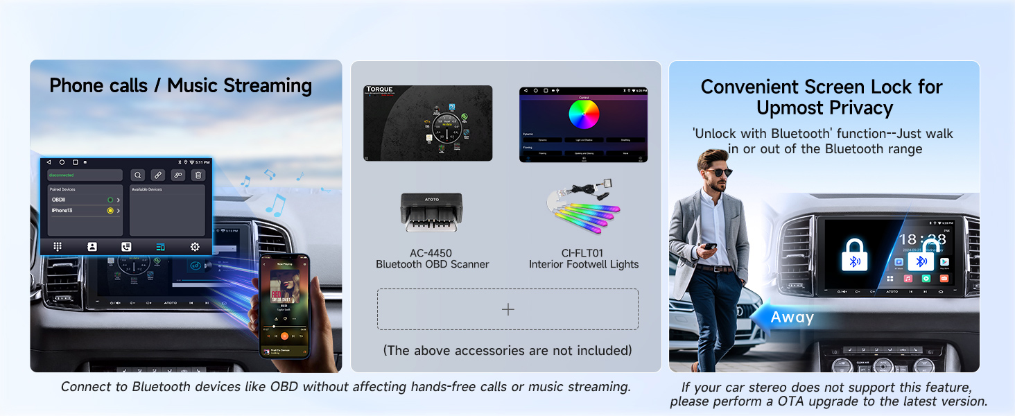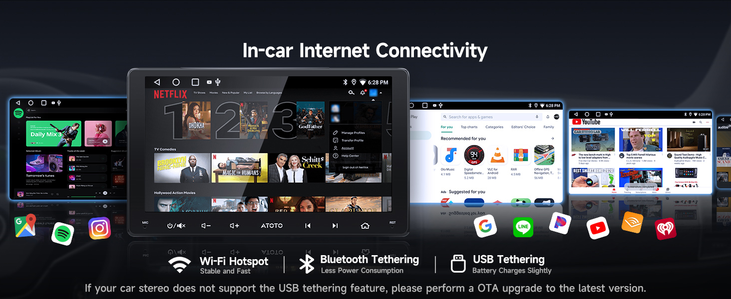 - Internet Connectivity Options: Choose your preferred method—Wi-Fi hotspot, Bluetooth tethering, or USB tethering—for internet access. Enjoy a smart driving experience and receive over-the-air (OTA) updates with seamless internet connectivity