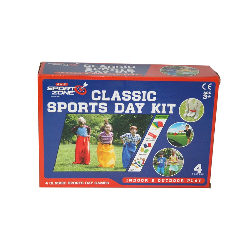 - Includes: 4 Coloured Sacks, 2 Three-Legged Race Straps, 4 Coloured Bean Bags and 4 sets of Egg & Coloured Spoons
