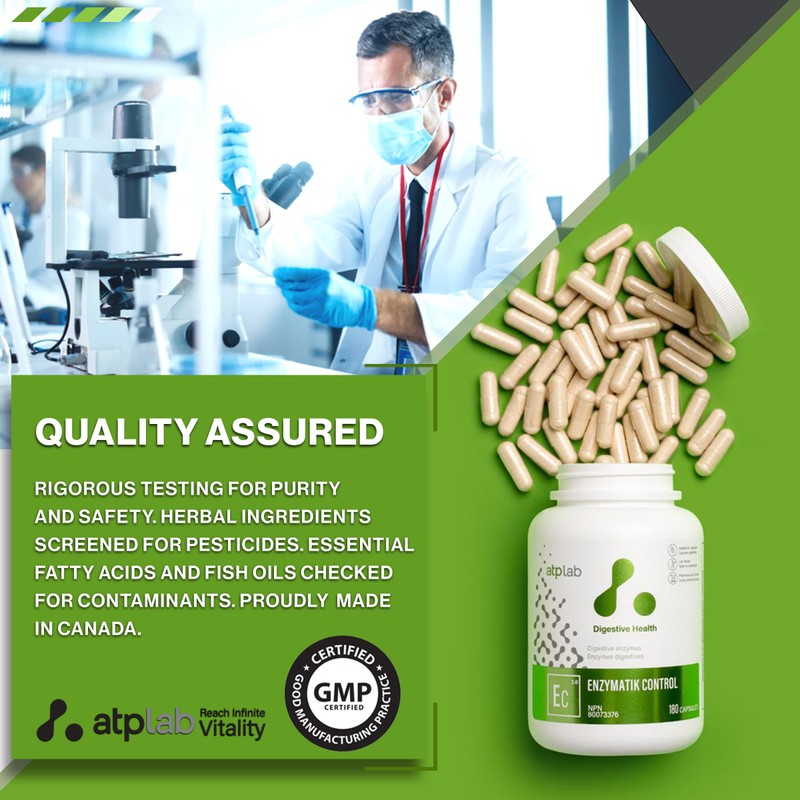 ATP LAB - Enzymatik Control 180 Capsules - Digestive Enzyme Supplement - Digestive Health - Gas Relief for Adults - Digestive Enzymes for Men and Women - 3rd Party Tested - 🍁Formulated & Made in Canada