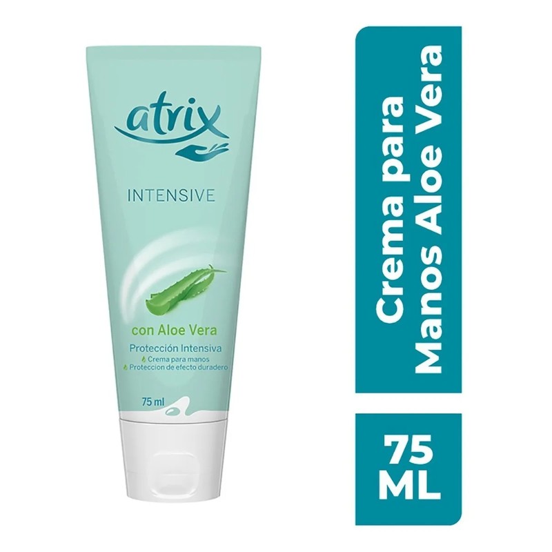 Consigue unas manos suaves e intensamente hidratadas con la Crema para Manos Atrix Intensive Hidratante ✨. Su fórmula de rápida absorción y fragancia de aloe vera es perfecta para el uso diario en piel normal. 💖