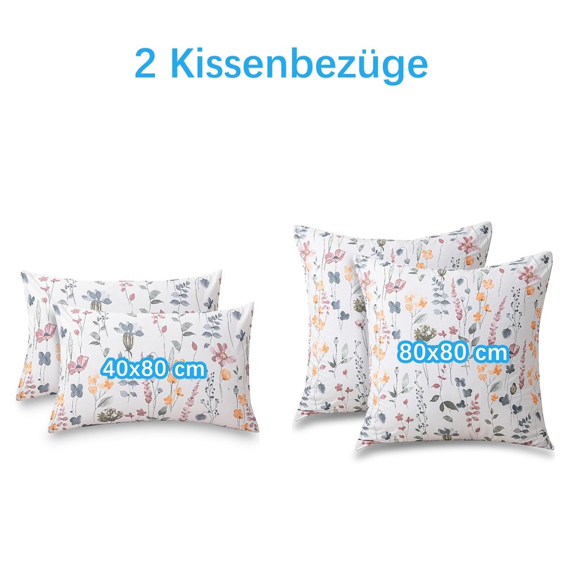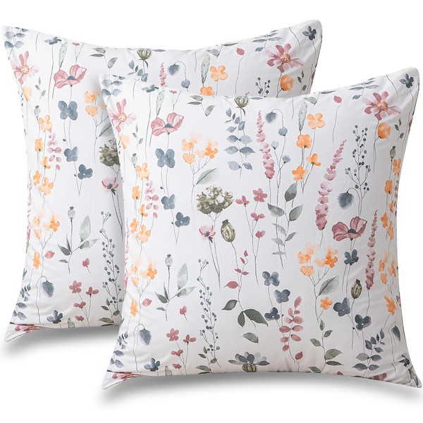 ATsense Cushion Cover 45 x 45 cm, Set of 2, 100% Cotton, Colourful Plants Flowers Pattern Pillowcase with Zip, Oeko-Tex Certified, Super Soft and Comfortable Cushion Cover