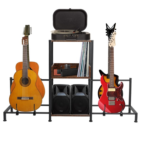 - Space-saving: This guitar rack has four holders that can accommodate up to four guitars, including electric and bass guitars. It also features three tiers of shelves for storing acoustic collections, guitar accessories, amplifiers, music albums, and magazines.