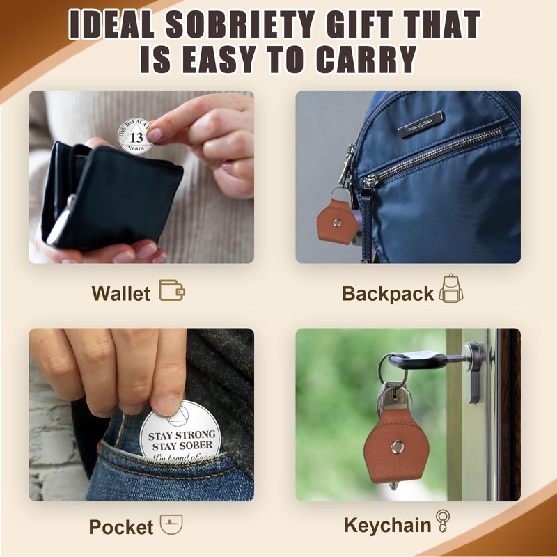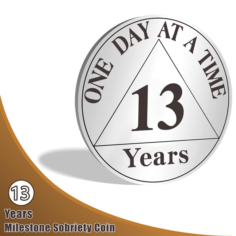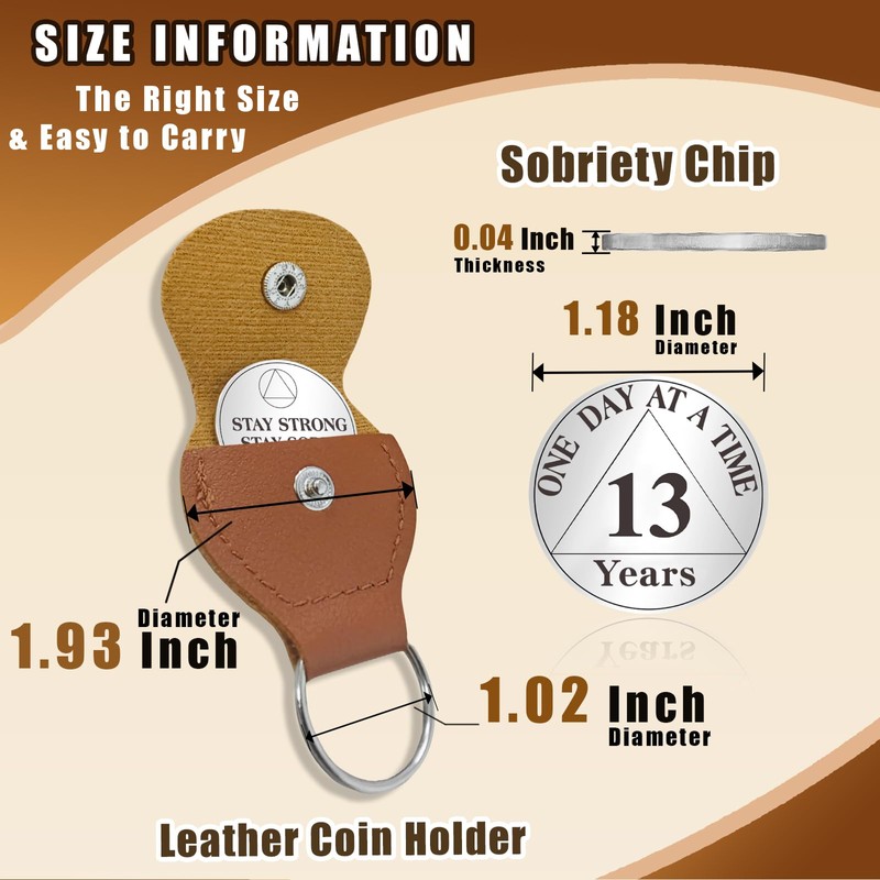 AtSKnSK 13 Years Sobriety Coin One Day at a Time AA Chips and Medallions with PU Leather Keychain Sobriety Gifts for Celebrating Alcoholics Anonymous Recovery Sobriety Gifts for Men Women