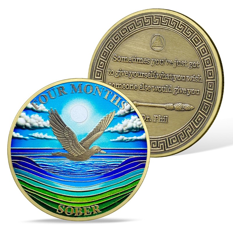 AtSKnSK 4 Months Sobriety Coin 1-12 Months Sobriety Coin Reborn Sober HA NA AA Recovery Addicted Chips Medallions Narcotics Alcoholics Anonymous Gifts for Men Women (4 Months)