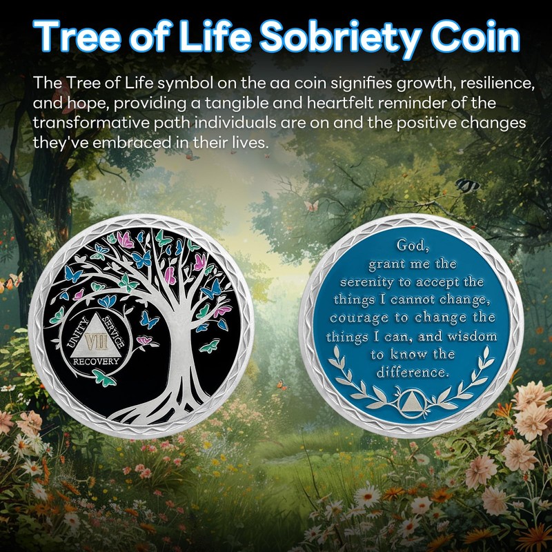 - More options. There are 1-20 years tree of life sobriety chips for you to choose as a sobriety coin. Each chip is carefully crafted with unique 3D craftsmanship and serves as a powerful reminder and source of support for you or your loved ones on their way to recovery. Perfect as a thoughtful sobriety gift for men.