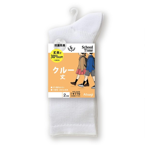 Atsugi CS77082 Crew Length Rib Socks, School or School Commute, Unisex, 2 Pairs, white