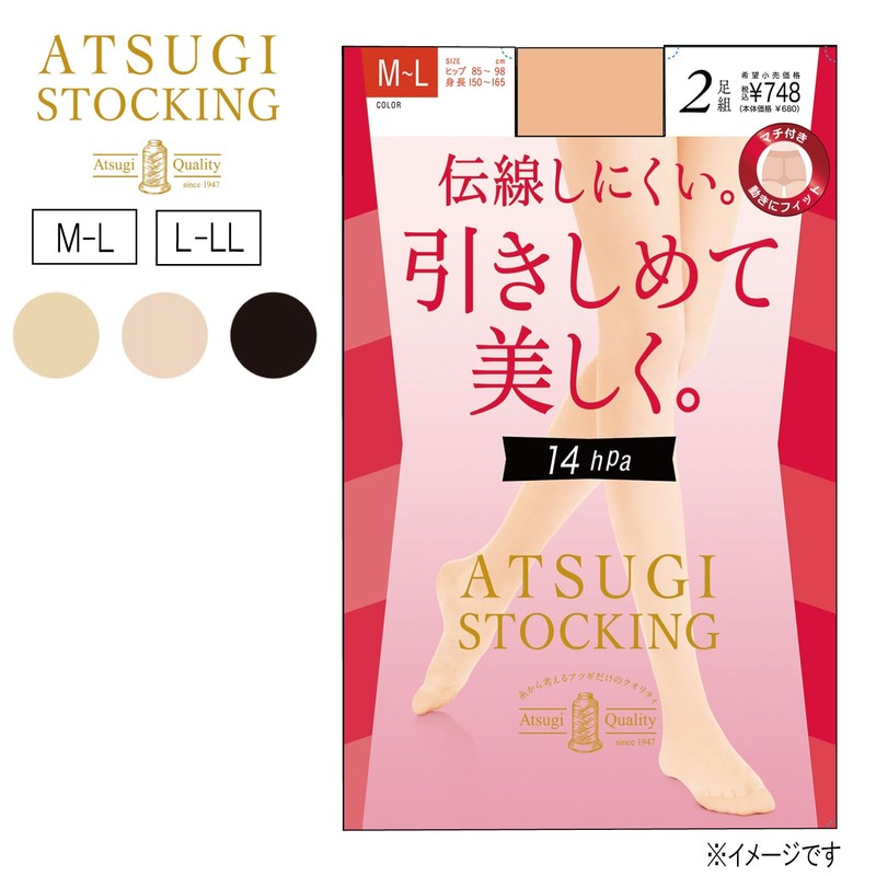 ATSUGI STOCKING FP68002P Women's 14hPa Compression Stockings (2 Pairs), Sheer Beige