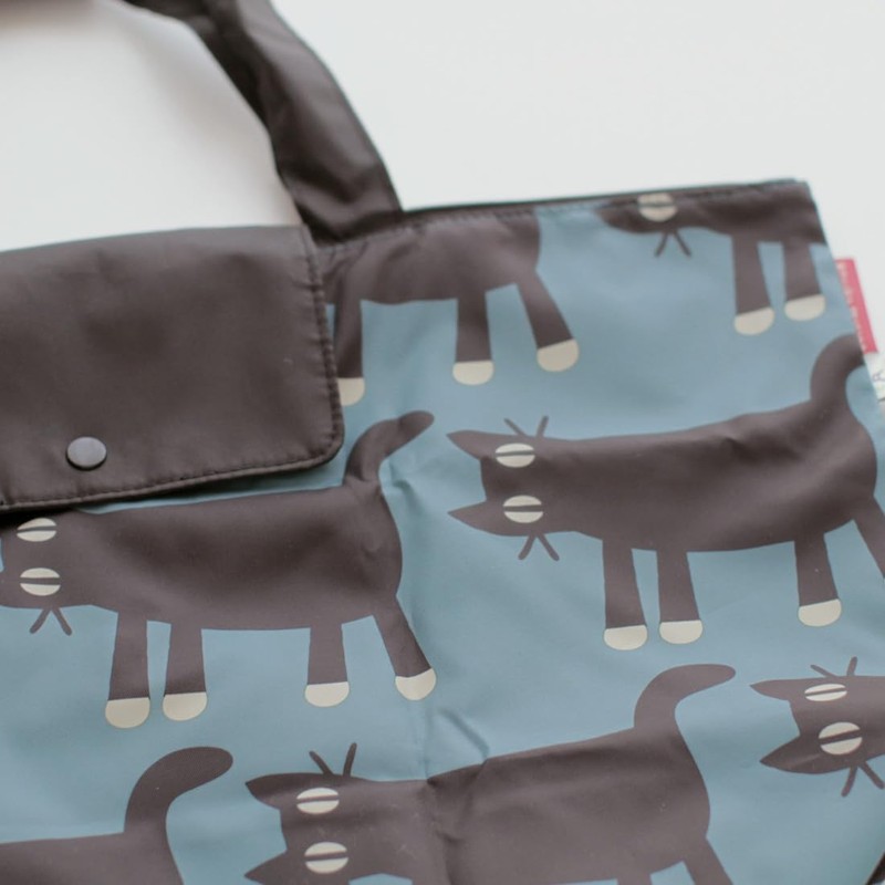 Atsukomatano 000312-0001-01 Eco Bag/My Bag, Ripleve Series, Sideways Cat, Blue, Women's, Approx. 11.0 x 10.2 x 7.1 inches (28 x 26 x 18 cm) (Packaged), blue