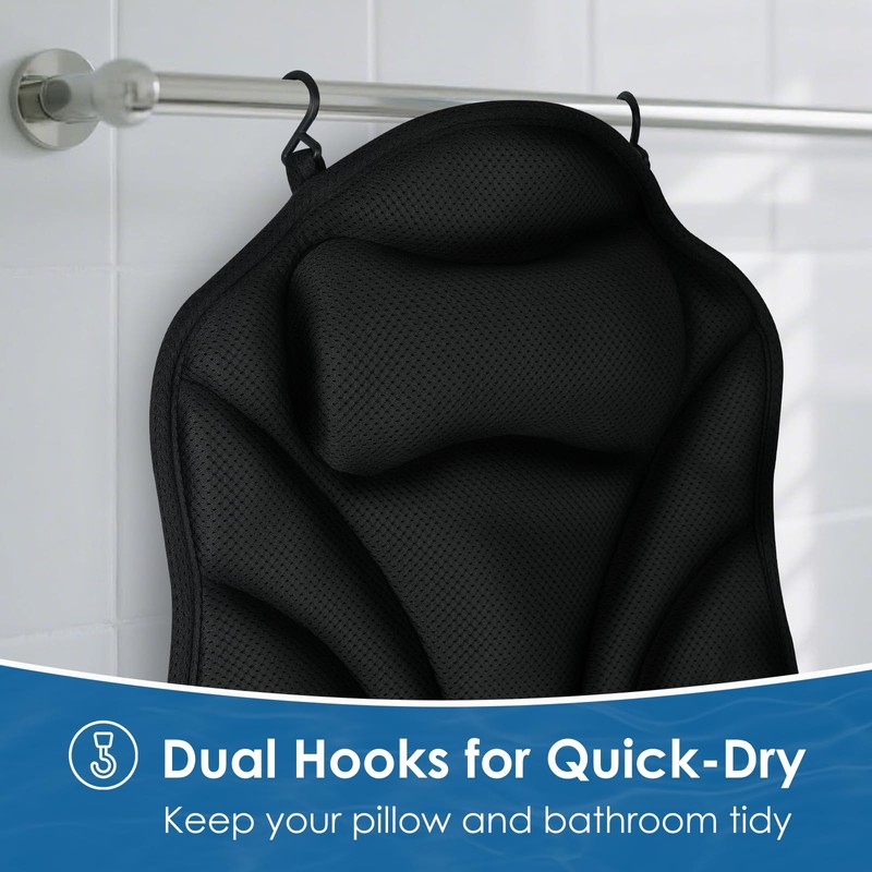 - Dual Hooks for Effortless Care: Featuring dual durable hooks to evenly distribute weight, the shower pillow provides easy hanging for drying and storage, keeping your bathroom tidy and hygienic after use. Simply hand-wash or machine-wash in your own mesh laundry bag to protect suction cups from damage. A low-maintenance solution for everyday use.