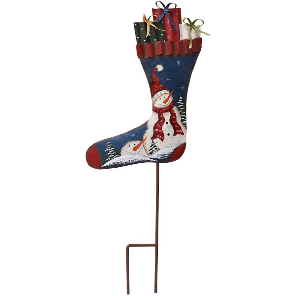 - METAL GARDEN ART: Christmas snowman stocking stake for garden is made of premium metal material. Durable and long lasting for years of use. Decorative garden stake is resistant of water, fire and weather. Great outdoor garden decoration yard sign.