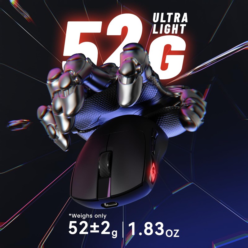 - 【HyperSpeed Triple-mode】HyperSpeed triple-mode connectivity supports 2.4GHz/Bluetooth/USB-C with zero-compromise performance. The 2.4GHz mode for 1ms latency (wired-equivalent), maintaining stable 10-meter transmission (no obstacles). Bluetooth dual-mode allows simultaneous pairing of 3 devices.USB-C direct mode features auto-protocol recognition, while esports mode locks to 2.4GHz to prevent audio device interference. All three modes switch seamlessly within 0.5 seconds without frame loss.