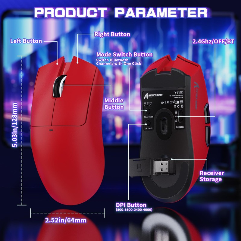- 59g Ultra-Lightweight Design: X11SE lightweight gaming mice is different from attack shark x11. It eliminates the charging base, reducing the weight of the mouse to 59g, which is lighter than X11. It is suitable for players who pursue lightweight design. Even if used for a long time, it can be easily controlled and reduce fatigue.