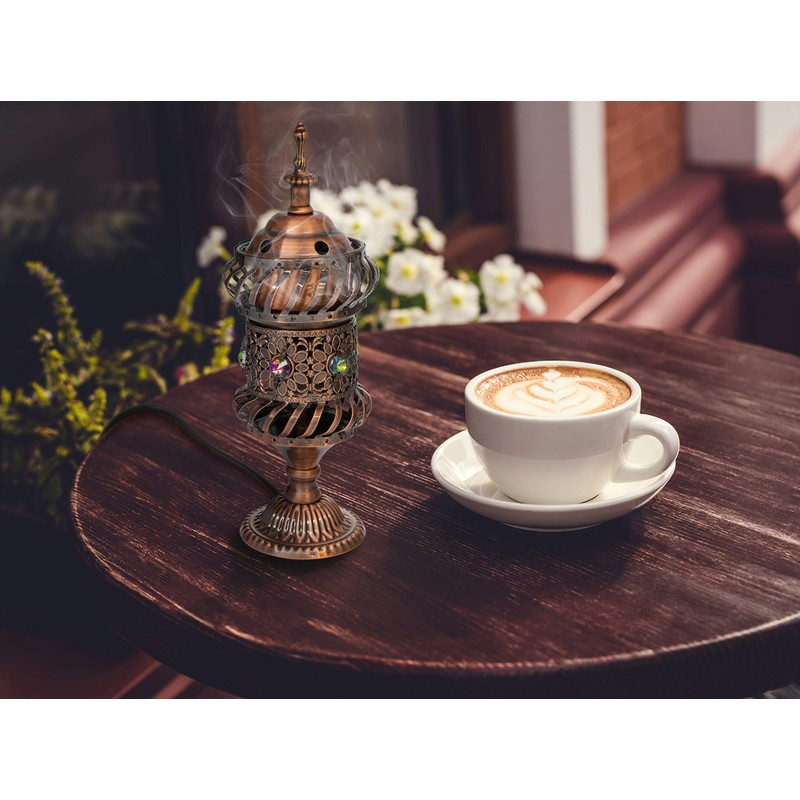 - Easy and safe : No adapters or voltage converters needed for this type of arabia incense holder. Direct Plug into the power outlet allows it to start burning immediately. Polarized electric plug does not fit loose or cause sparks, no open flames, safe around pets and children.