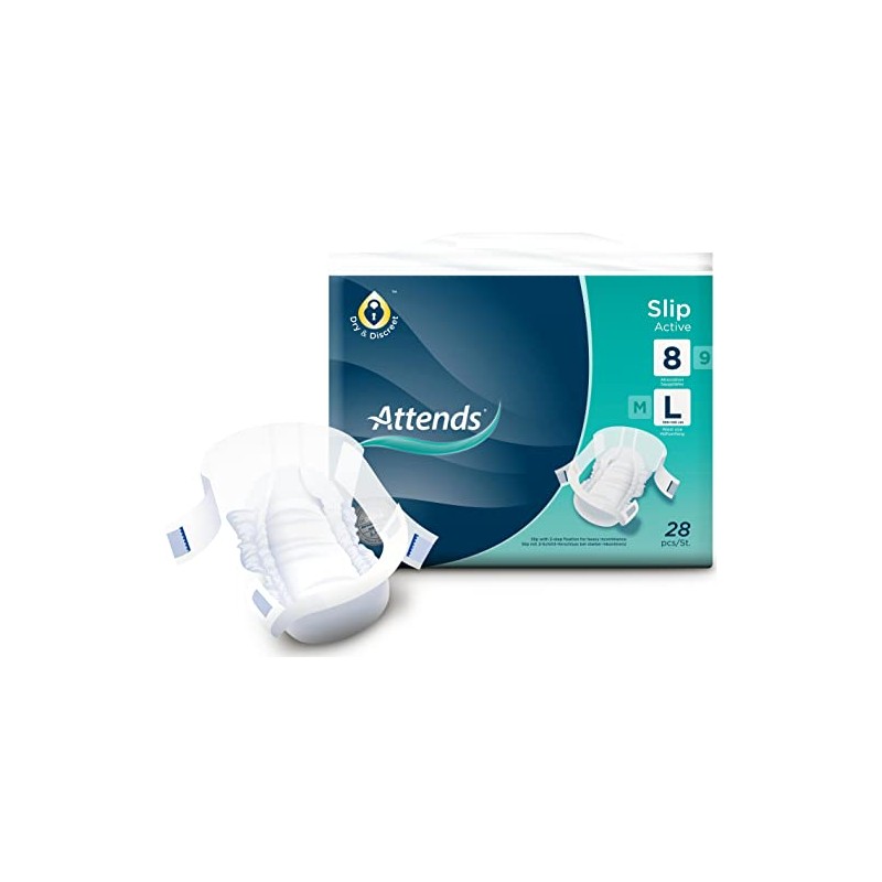 The new development of Attends: The briefs with anatomical S-shape - Attends Slip Active 8 Large (1 x 28 pieces).