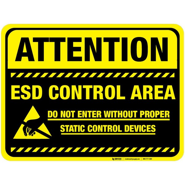 Attention ESD Control Area (Black) - Floor Sign 12" x 9" - Permanent