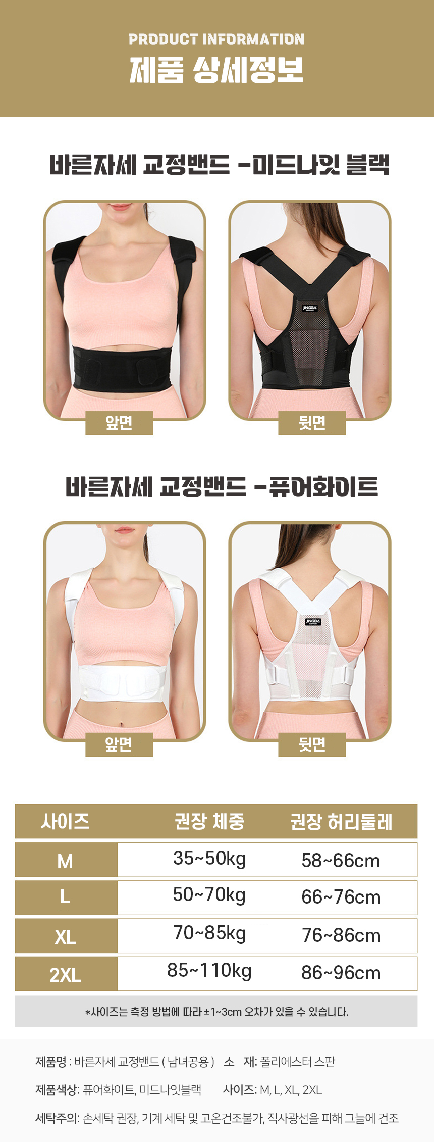 Atticolo posture correction band, round shoulder, correct posture, curved shoulder correction band, midnight black, midnight black_2XL2XL / 아띠꼴로 자세교정밴드 라운드숄더 바른자세 굽은어깨 교정밴드, 미드나잇블랙미드나잇블랙_2XL2XL